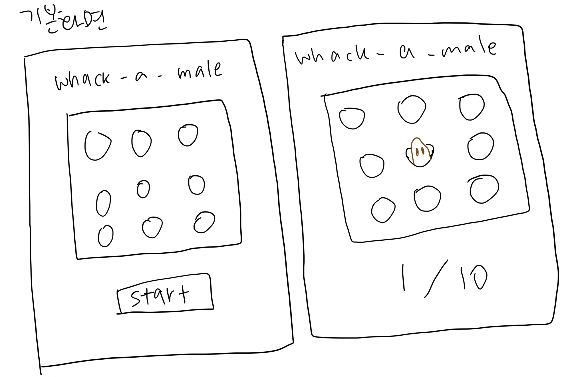 - 9개의 두더지 구멍이 처음 화면에 나옴
