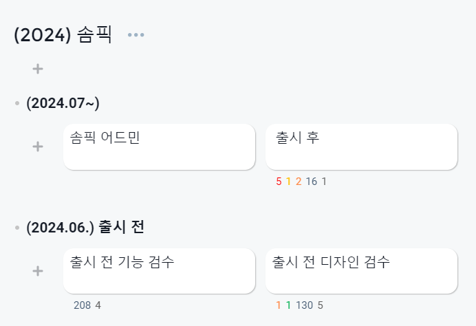 솜씨당 QA도 진행하게 되었는데 지금 서비스하는 운영서버를 확인하면서 버그나 이슈를 찾아야 했다. 인턴 초반에 진행했던 피그마 취합 작업으로 서비스에 대한 이해가 올라가서인지 생각보다 수월했다. 하지만 버그를 잡기 위해 계속 새로운 액션을 생각해 내는 건 좀 힘들었다. 점점 더 전제조건이 붙고 과연 유저가 우연히 이런 케이스에 도달할 수 있나 하는 생각이 드는 지점까지 가긴 했지만 사수님이 그렇게까지 해야되는게 맞다고 하셔서 얌전히 QA를 진행했다. 그러면서 나름 또 여러가지 버그를 찾았다. 이미 인지하고 계시는 부분도 있었고 아닌 부분도 있었는데 크리티컬한 부분은 바로 수정해서 배포하시는걸 보면서 개발은 시간싸움인건가 하는 생각이 들었다.